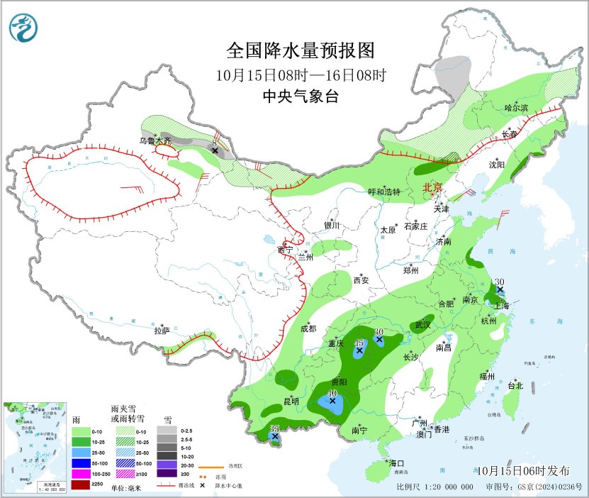 明后兩天華西至黃淮等地雨勢將加強(qiáng) 較強(qiáng)冷空氣開始發(fā)力